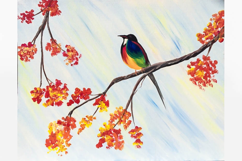 Paint Nite Somewhere Over The Rainbow Bird Painting Classes Washington Dc Coursehorse Yaymaker